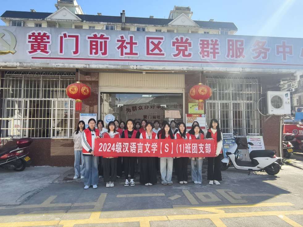 图为2024级汉语言文学【S】(1)班团支部“青春助老践初心·便民服务暖社区”志愿服务活动全体合影