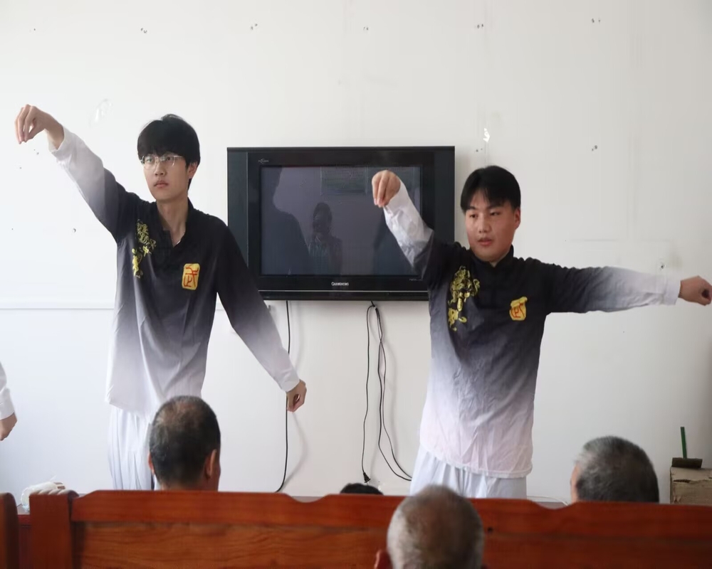 融入康复医学理念的五禽戏表演成为亮点:成员详解虎戏强筋骨、鹿戏舒经络等招式的医疗功效,引导老人跟随练习,将传统养生与现代康复知识结合,现场参与率达80%。