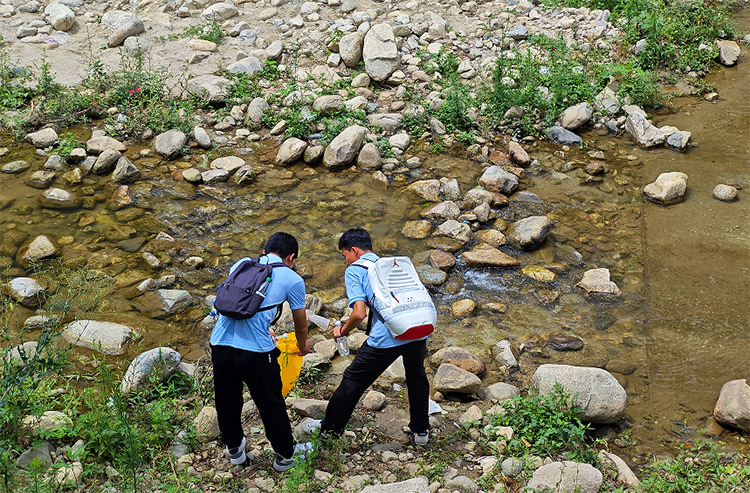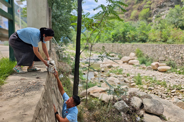 午后,服务队马不停蹄地前往涧峪水库。这座位于华州区高塘镇的中型水利工程,承担着防洪保安、农业灌溉、生态保护和城市供水等重要功能,对当地居民的生产生活至关重要。队员们到达后,迅速分组,手持垃圾袋、夹子等工具,沿着河道认真清理垃圾。大家不放过任何一个角落,仔细捡拾岸边的塑料瓶、包装袋、枯枝落叶等杂物。尽管烈日炎炎,汗水湿透了衣衫,但没有一名队员喊累。经过几个小时的努力,河道周边环境焕然一新,水库的生态面貌得到了显著改善。