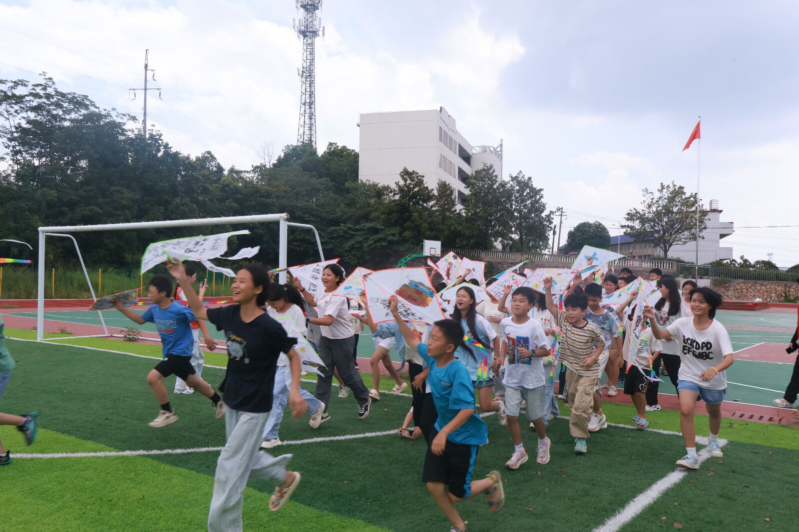 活动在“数字炸弹”游戏中拉开帷幕,主持人写下“炸弹数字”,同学们轮流猜数,范围不断缩小,“炸弹数字”被猜中时,现场欢声笑语不断,陌生感悄然消失。在随后的“我的故事画”环节里,同学们用颜料在风筝上描绘故事与梦想,绘就独属于自身的梦想纸鸢。创作完成后,中小学生们在大学生志愿者的引导下奔赴操场,放飞风筝。起初有人因操作不当导致风筝坠落,但在志愿者手把手的指导与伙伴们的相互鼓劲下,大家逐渐摸索出技巧,一只只绘满心意的风筝成功升空,同学们拉着线奔跑,在蔚蓝的天空下构成了一副动人画卷。