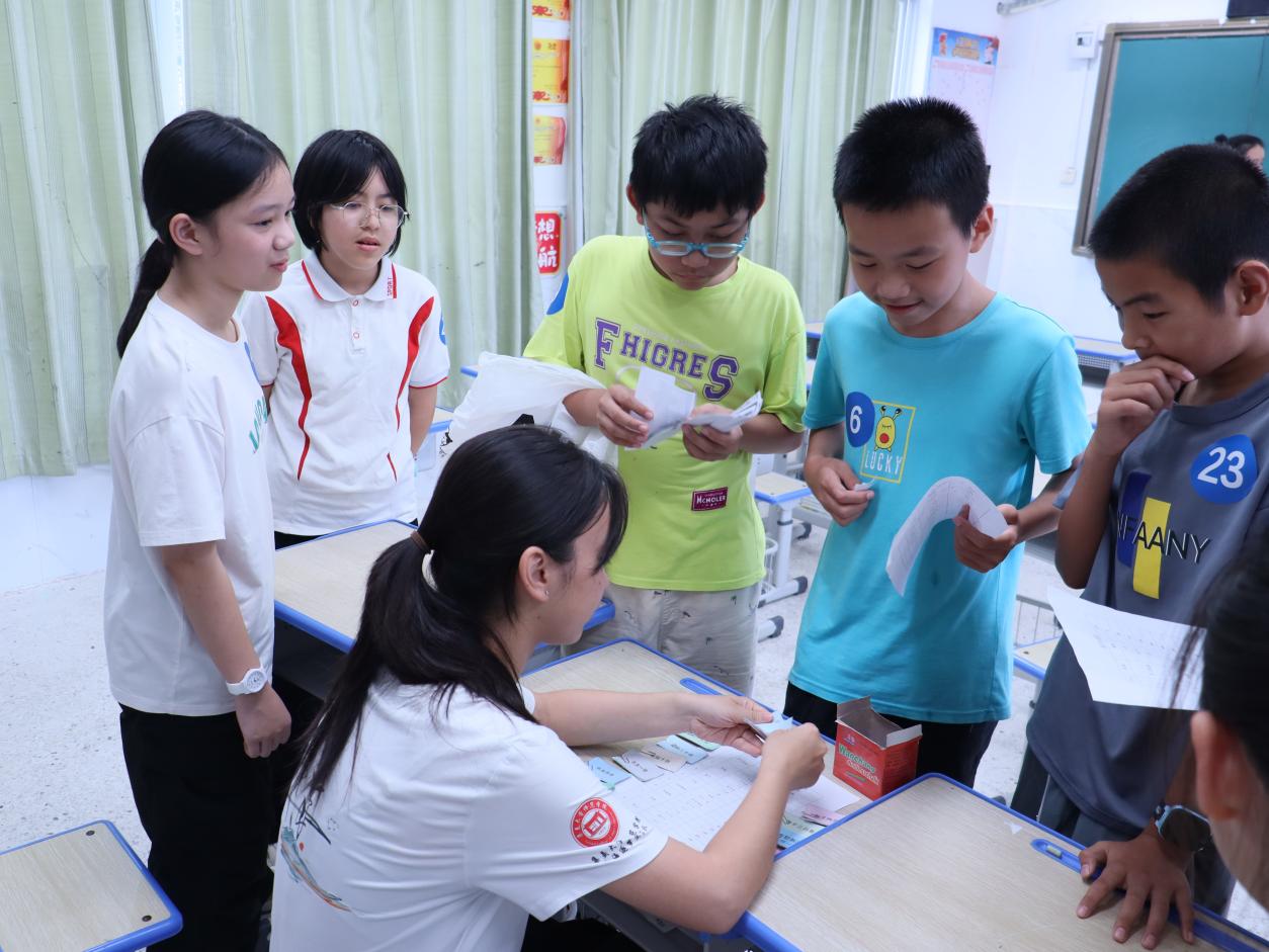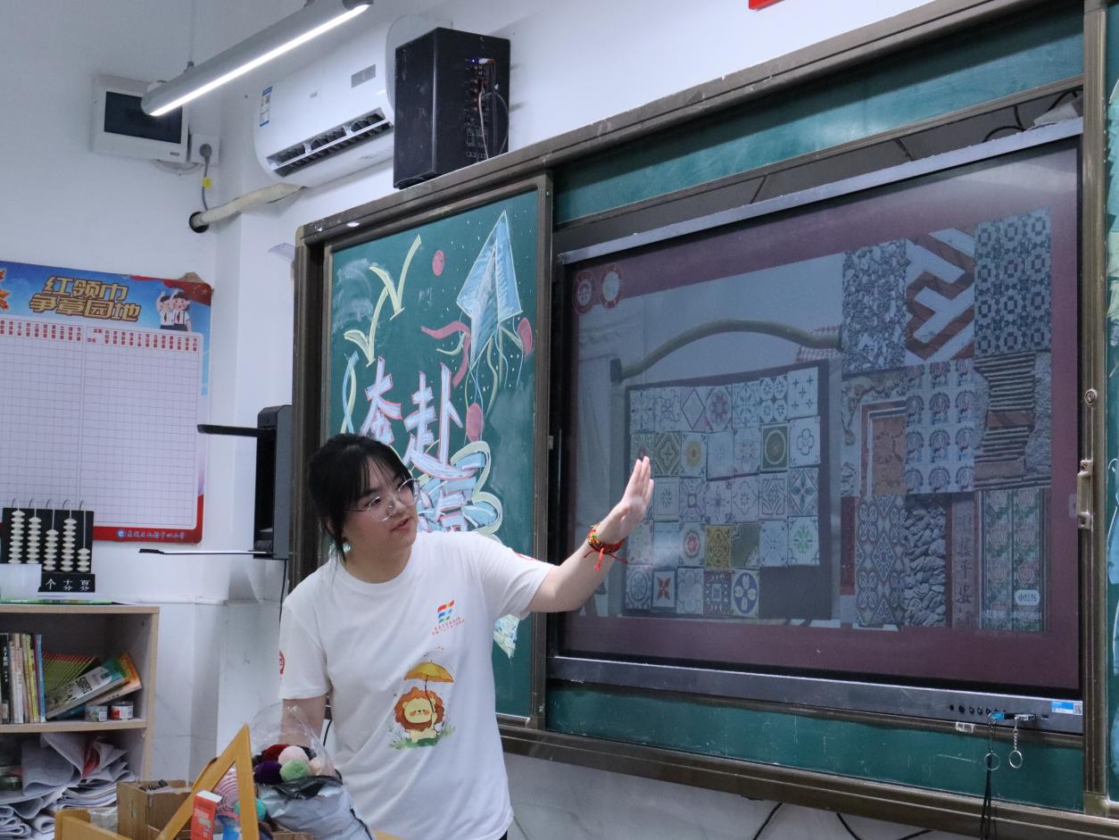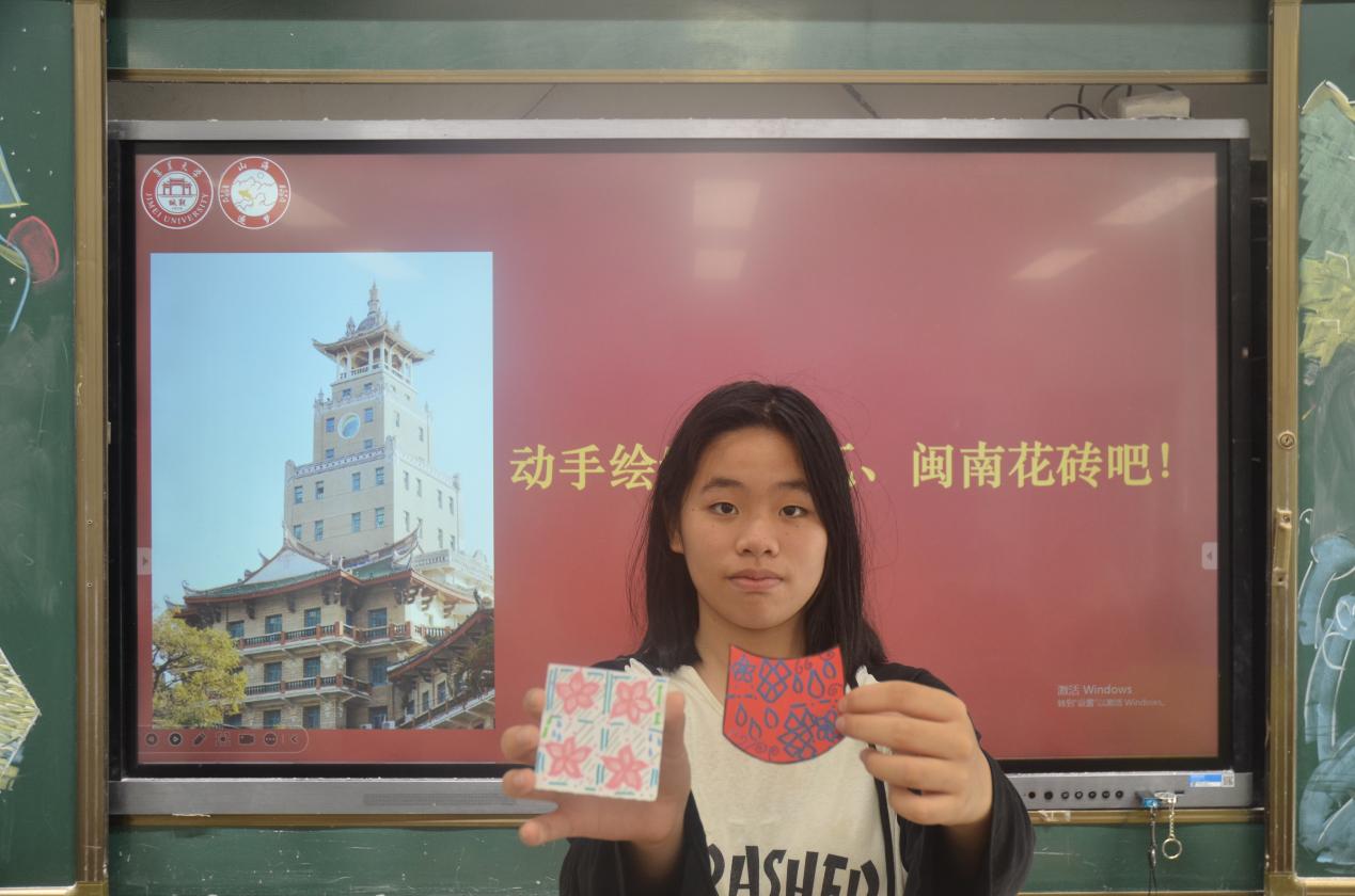 巧手塑瓦承匠心:建筑课堂化抽象为具象在“赓续嘉庚精神,争做强国少年”课程中,实践队以“嘉庚建筑”为切入点,打破山海距离的认知壁垒。学生通过了解“穿西装戴斗笠”“曲燕尾脊”等独特建筑风格,亲手绘制象征嘉庚精神的红色瓦片,最终在实践队队员的帮助下拼接成立体建筑模型。