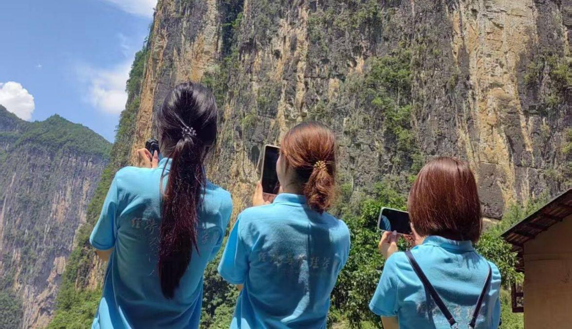 7月10日上午,团队成员们在小镇居民的带领下前往旱夔门景区,全方位、多角度地拍摄出旱夔门的雄伟险峻,通过视频和照片的方式,力求将这一自然景观完美呈现。通过采访小镇居民了解到景区目前的优势与需求,队员们积极建言献策,为当地文旅建设提供自己的建议。
