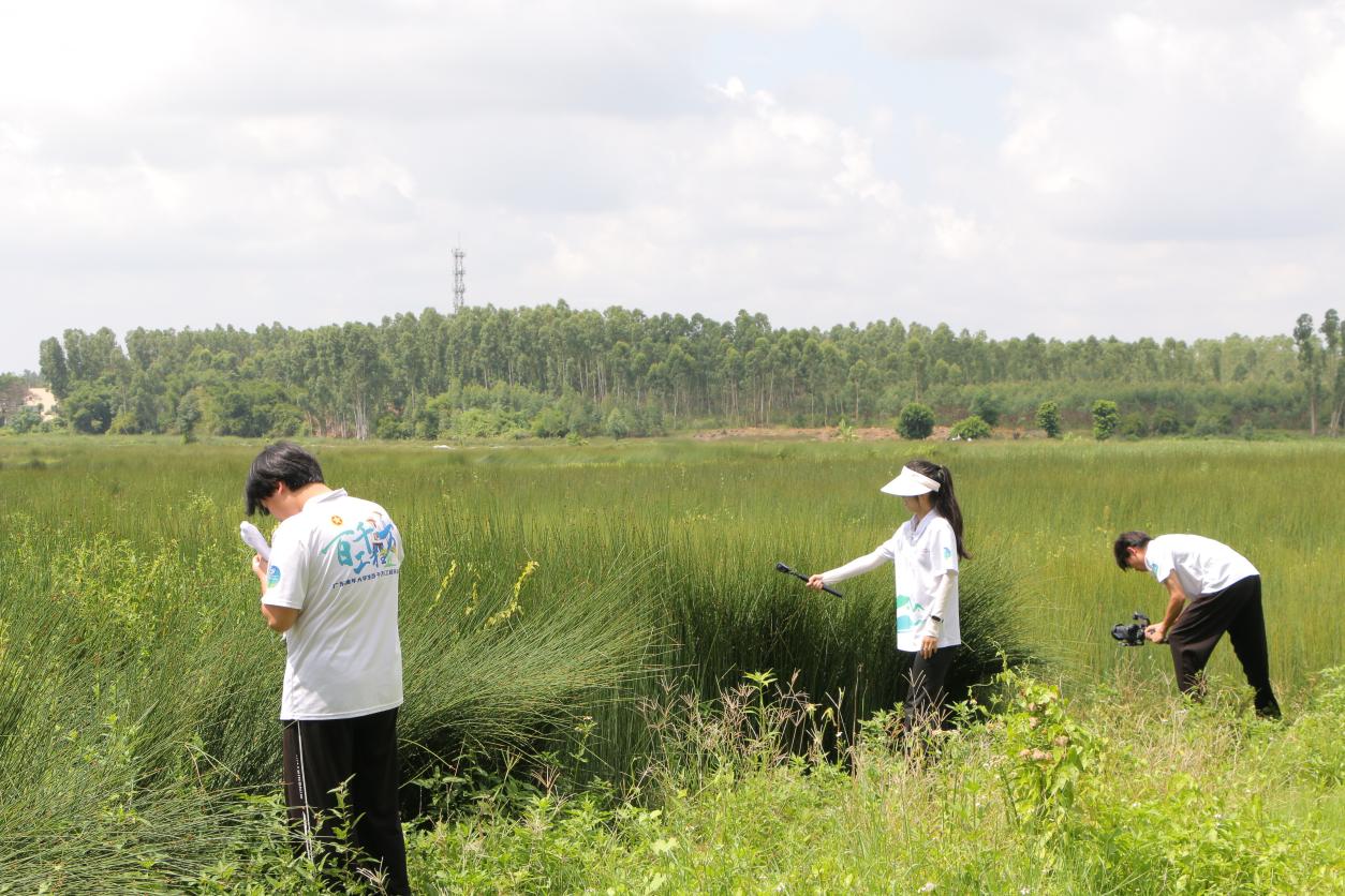 图为成员观察拍摄蒲草 杜俊烯 摄