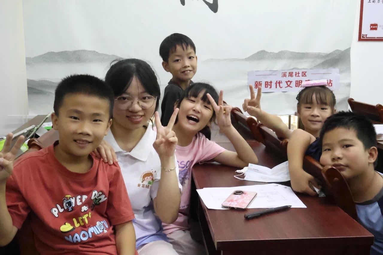 图为实践队与溪尾社区儿童合照 吕思欣 孙柔韵 摄