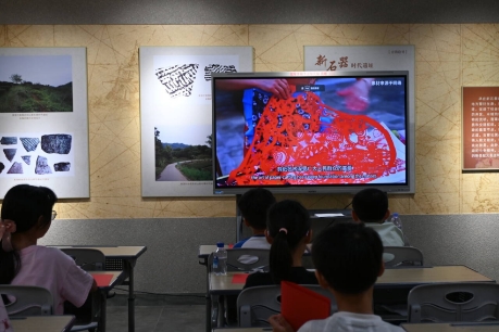 图为用视频展示的方式了解剪纸。吴一虹 摄