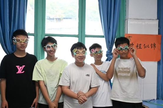 夏坤荣老师还组织大家戴上眼镜合影留念,照片中,一张张笑脸配上五彩斑斓的眼镜,显得格外生动有趣。一位同学兴奋地说:“没想到扭扭棒还能做出这么酷的眼镜!我要带回家给爸爸妈妈看!”