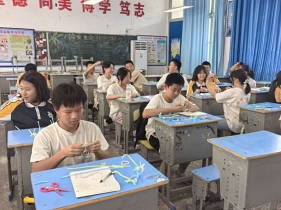 2025年7月11日,古丈县民族中学的教室里充满了欢声笑语,一场妙趣横生的手工课正在这里进行。在夏坤荣老师的带领下,同学们用五颜六色的扭扭棒制作了各式各样的创意作品,从眼镜、戒指到向日葵和魔法棒,大家不仅体验了手工的乐趣,还收获了满满的成就感。