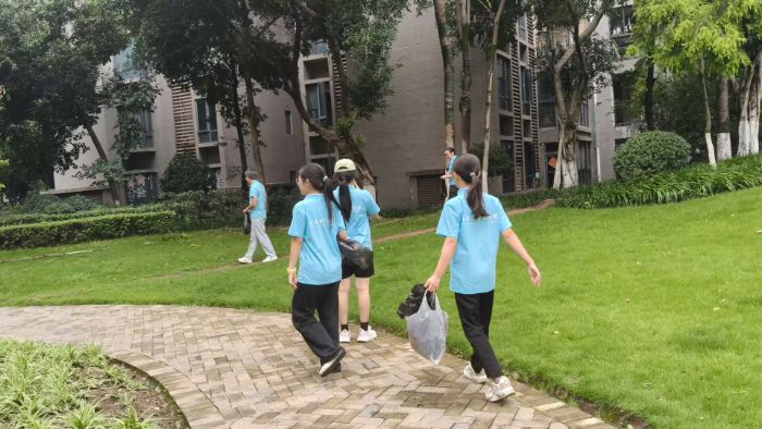 活动中,蒲公英志愿服务队志愿者携带工具分组行动,重点清理社区绿化带、休闲广场及楼道角落的各类垃圾。他们分工协作细致清理隐藏在草丛中的塑料瓶、食品包装袋,路面散落的纸屑、烟头等生活垃圾,累计清除各类垃圾10余袋,社区公共区域环境得到显著改善,绿化带重现整洁,广场恢复清爽,为居民营造了舒适整洁的生活空间。志愿者们用汗水践行环保承诺,以行动传递绿色理念,推动居民将环保意识转化为日常习惯,让绿色生活理念在社区落地生根。