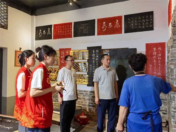 学生感悟:观摩牛师傅拓碑那天,师傅说:“这活儿和你们做实验似的,步骤对了还不够,得带着心。”看着他布满老茧的手稳稳按住拓包,突然明白,那些拓片不只是墨色痕迹,是把石碑上的故事一点点“揭”下来,递到我们手里,现在总刷短视频,要是能多拍点师傅拓碑的细节,让更多人知道老碑文里藏着多少往事,也算我们能做的小事吧。