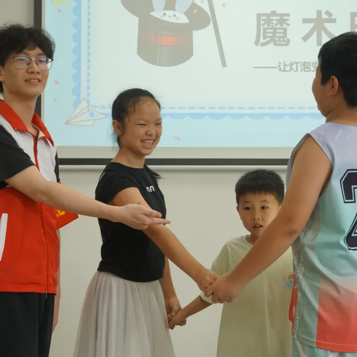 为推进“百千万工程”走深走实,激发基层儿童科学兴趣,2025年7月15日,华南师范大学物理学院四进永和服务队成员杨李浩走进广州市黄埔区永和社工服务站,开展以《人体导电灯泡》为主题的电学互动课堂。