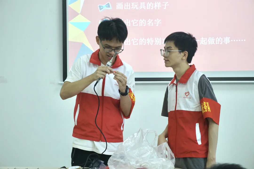 为积极落实“百千万工程”,丰富社区儿童的暑假生活、助力社区儿童身心健康发展,2025年7月15日,华南师范大学物理学院四进永和服务队队员郑点走进广州市黄埔区永和社工服务站,为小朋友们带来富有童心童趣的“玩具总动员之拉线飞轮”活动课。