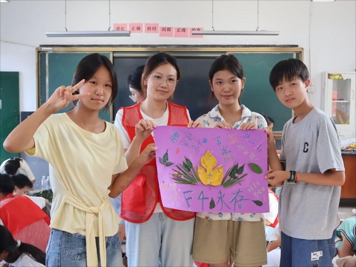 分享环节中,各组“生命曼陀罗”主题各异。有的小组以友谊为核心,画作大树象征情谊根基,两侧花叶代表共同付出,下方 “友谊长存” 四字彰显恒心;有的小组以生命为主题,画作盛开的花朵,繁花与草木是生命历程中的美好遇见。自然的探索既自由又安心。学生们说 “用树叶表达心情很解压”,这场将心理健康教育融入自然与艺术的活动,让成长看得见。团队将持续推进 “三下乡” 服务,用更多青少年喜爱的形式播撒心灵阳光。 (通讯员 颜慧 冯帆)