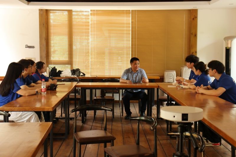 (图为实践队成员与铁牛村徐书记进行座谈访问)