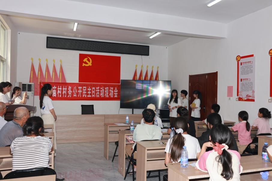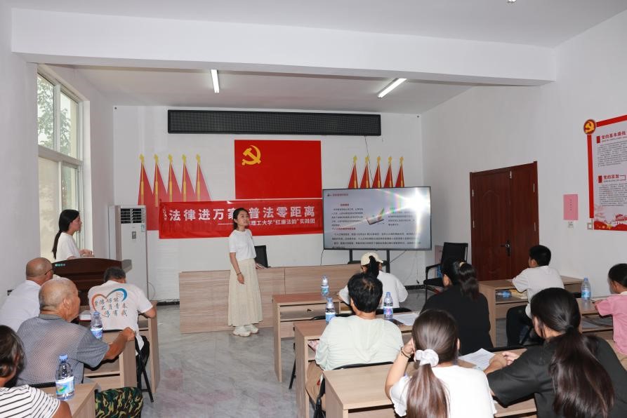 实践团成员们在村委会活动室开设“双普课堂”。成员们用标准普通话,结合图文PPT,围绕《民法典》中婚姻家庭、土地承包、防诈骗等与村民息息相关的法律知识,用通俗易懂的语言进行讲解。讲解过程中,成员们坚持使用标准普通话,并鼓励村民尝试用普通话提问和交流,对常见的方言词汇进行普通话对照解释,让法律知识在“乡音”与“国音”的转换中更易理解和接受。