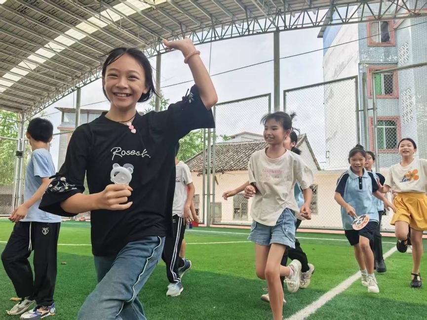 7月10日,在广西壮族自治区桂林市灵川县海洋乡中心小学的足球场上,来自南京财经大学国际经贸学院“漓漓圆上草”支教团的大学生们,给当地孩子们带来了一堂特别的足球课,开始了一场特别的比赛。孩子们奔跑跃动的身影、此起彼伏的欢乐笑声汇聚在一起,足球在这里超越了游戏本身,成为连接山区与外部世界的纽带。