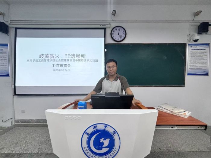 为明确工作安排,进行工作动员,为后续赴合肥开展调研工作做好准备,岐黄薪火,非遗焕新——巢湖学院工商管理学院赴合肥开展调研实践团于6月24日下午四点半在博学楼511召开工作布置会。会议由指导老师葛晓龙主持,团队全体成员参会。