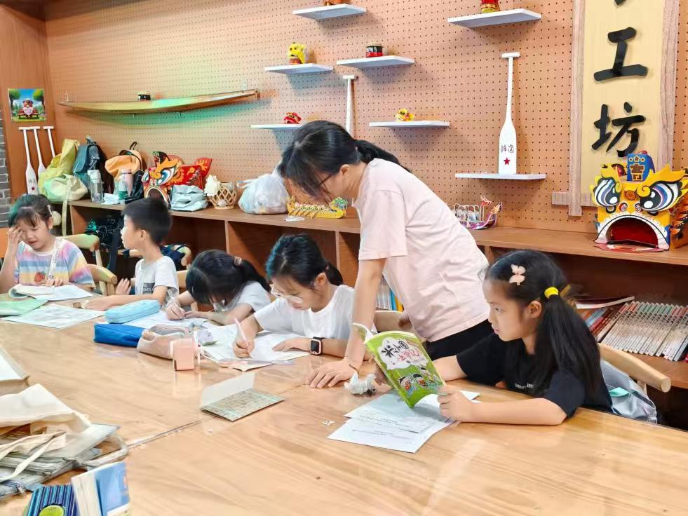广州航海学院鸦岗龙舟逐浪突击队在鸦岗芝生书舍进行辅导作业活动+陈美丽摄