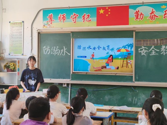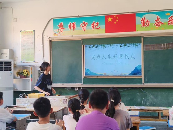 随后,由分团长梁幸铷主持举行了开营仪式。支教团成员和小朋友们共同完成了自我介绍的环节和充满小巧思的破冰活动,随后,分团长给小朋友们带来了一节干货满满的暑期防溺水安全教育主题课,保障孩子们在炎炎夏日安全地释放青春的活力。