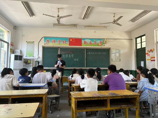 随后周老师为学生们上了一节文学鉴赏课,以当代作家刘亮程的作品《寒风吹彻》为范例,带同学们领略了文字之美,同时藉由“寒风”和"温度"的意象激发同学们对苦难与生命力量的思考,在同学们心中埋下了文学的种子。