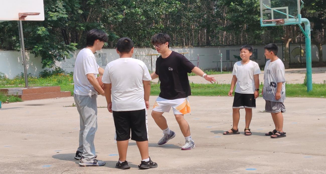 “球跃童心乐翻天”,出于对不同类型学生的考量以及对炎热气的担忧,篮球课上周司晨和张钧清老师贴心地将室内学习与室外运动相结合。不仅通过有趣清晰的视频教导篮球的基础背景,也通过科学耐心的动作指导传递篮球的实践技巧。