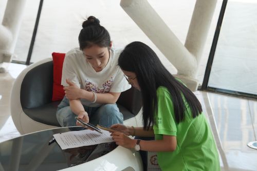 图为实践团成员对神木市文投集团艺术团团长王老师进行采访 陈静涵摄