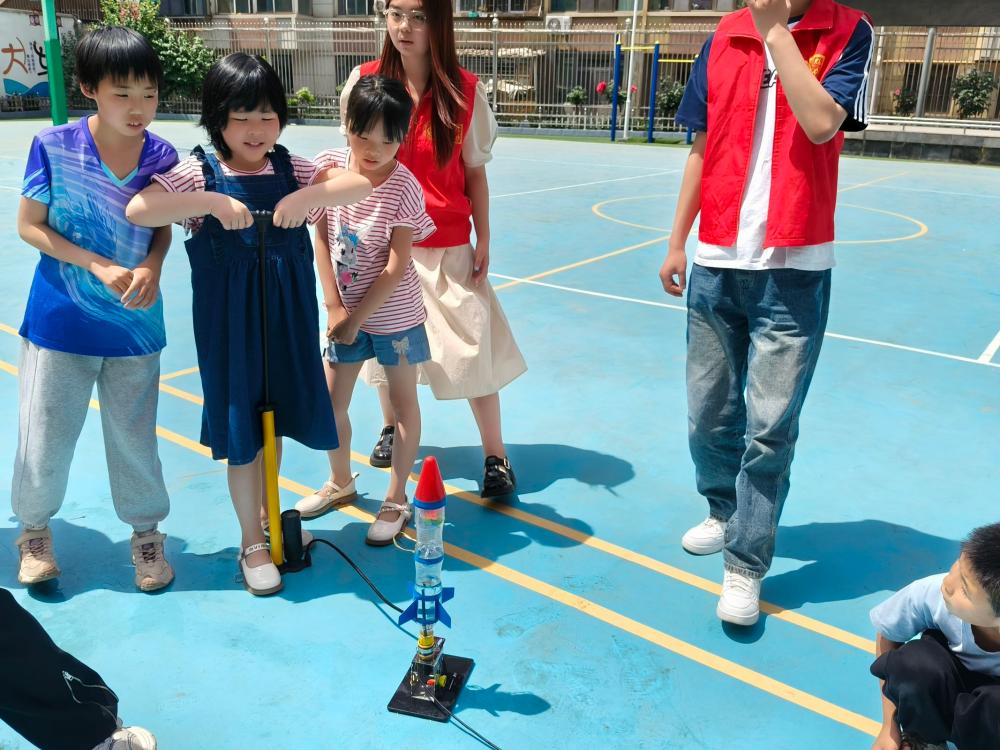 (图为实践队教小朋友制作水火箭的场景 供图:贾铭萱)