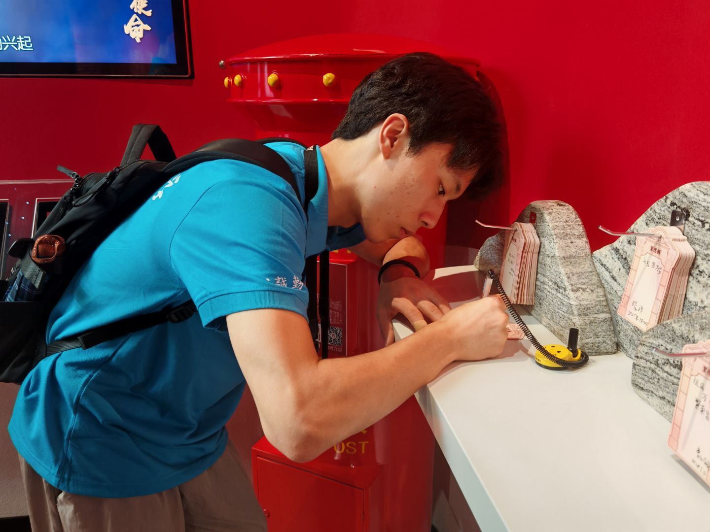 在本次实践活动中跟随实践团参观中共二大会址,我感到无比荣幸,内心充盈着使命感和自豪。在参观接近尾声时,我们在留言板上满怀激情和感动写下了自己的感悟:“少年强则国强,时刻心系祖国,勿忘来时路!”