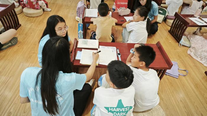 教室里静悄悄的,孩子们专注答题,遇到困惑时举手请教,实践团成员就立刻俯身耐心讲解,一步步帮他们攻克薄弱环节。这样的自习不再是盲目刷题,而是一场精准提升的高效学习之旅。