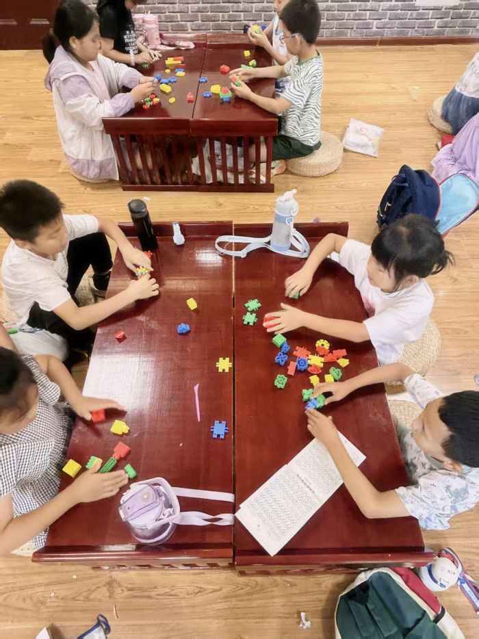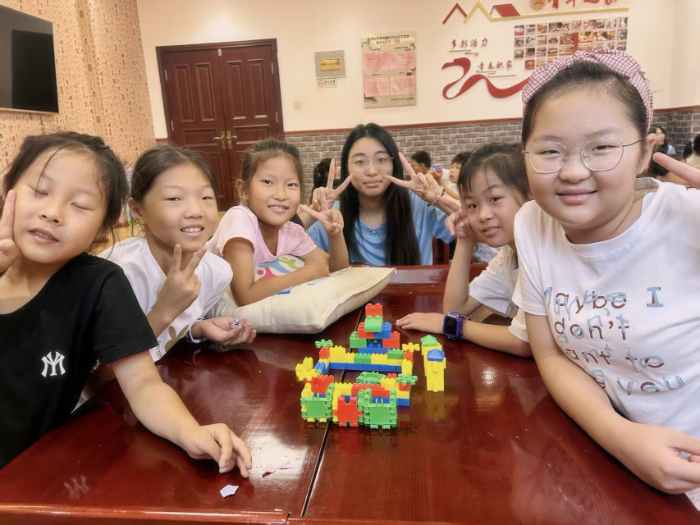 积木创意拼接环节则为孩子们的想象力提供了更广阔的空间。实践团不设固定主题,引导孩子们自由发挥,小小的积木块在孩子们手中变成了飞机、城堡、宇宙飞船等各式作品,协作的乐趣与创新的火花在互动中持续迸发。