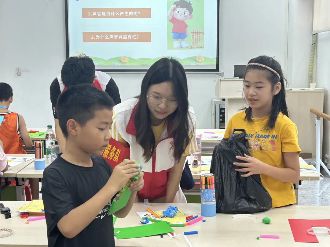 为贯彻落实“百千万工程”教育部署,丰富基层儿童科学启蒙内容,2025年7月16日,华南师范大学物理学院四进永和服务队队员熊梓伊走进广州市黄埔区永和社工服务站,开展主题为“吹出来的科学:排笛手工+声学探秘课”的趣味科普课程。本节课通过“动手制作—激发好奇—理解原理”的循序设计,引导小朋友在操作与感知中认识声音的生成过程,并以排笛为媒介完成一次科学与艺术的双重探索。
