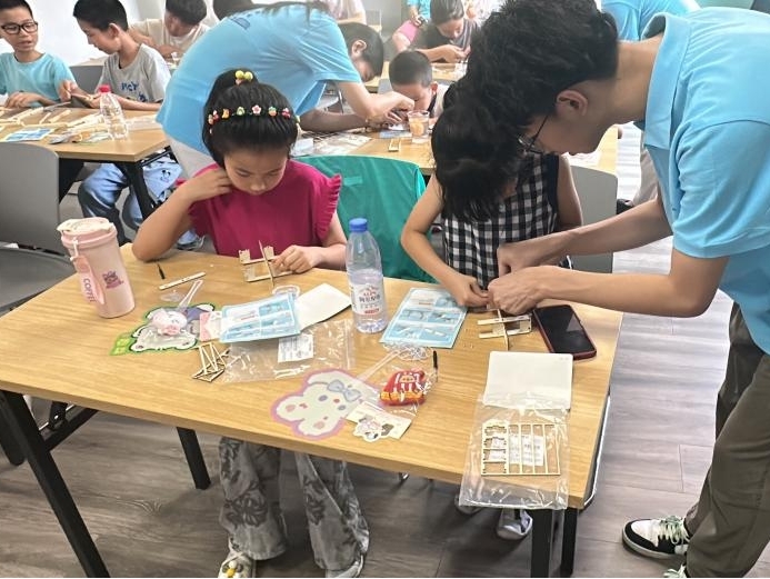 图 7实践团与孩子们拼接桥梁模型 殷泽富摄