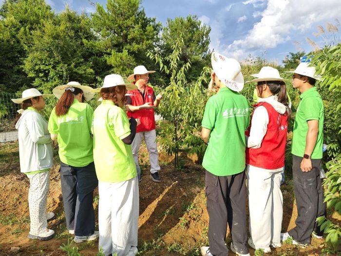 随后,实践队员来到山苍子-芙蓉李套种试验田,倪林副教授向大家介绍了山苍子-芙蓉李复合种植新模式。通过山苍子挥发油的驱虫作用抑制芙蓉李的病虫害发生,显著降低农药施用量,提升了果实产量和品质,为构建绿色、环保、可持续的山苍子-芙蓉李栽培体系提供了新路径。