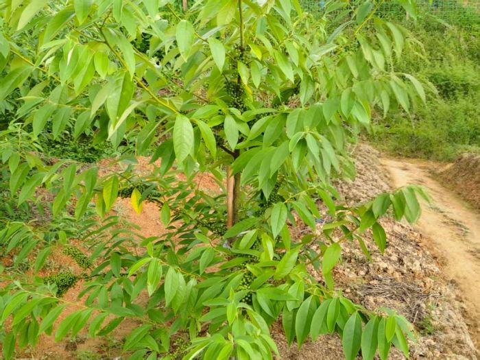 接着,倪林副教授带领实践队员来到山苍子种植园,向大家介绍山苍子的雌花、雄花、果实形态,并摘下几颗果实给实践队员观其色、闻其香、品其味。他深入剖析了山苍子的次生代谢产物组成及其药理活性成分,阐释了种质资源选育与精油提取工艺优化的研究进展,特别就提升精油得率、良种选育等关键技术环节进行了专业指导。