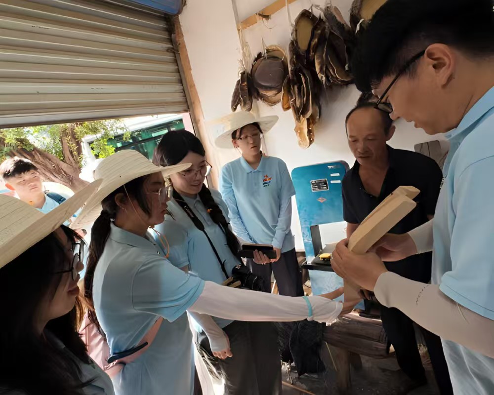 离开五间镇,实践团来到松溉镇。在一间古色古香的小屋里,罗钞老师和他的妻子涂疆蜀老师正忙碌地制作着油纸伞。屋内弥漫着淡淡的桐油味,墙上挂满了各式各样的油纸伞,宛如一幅幅绚丽的画卷。