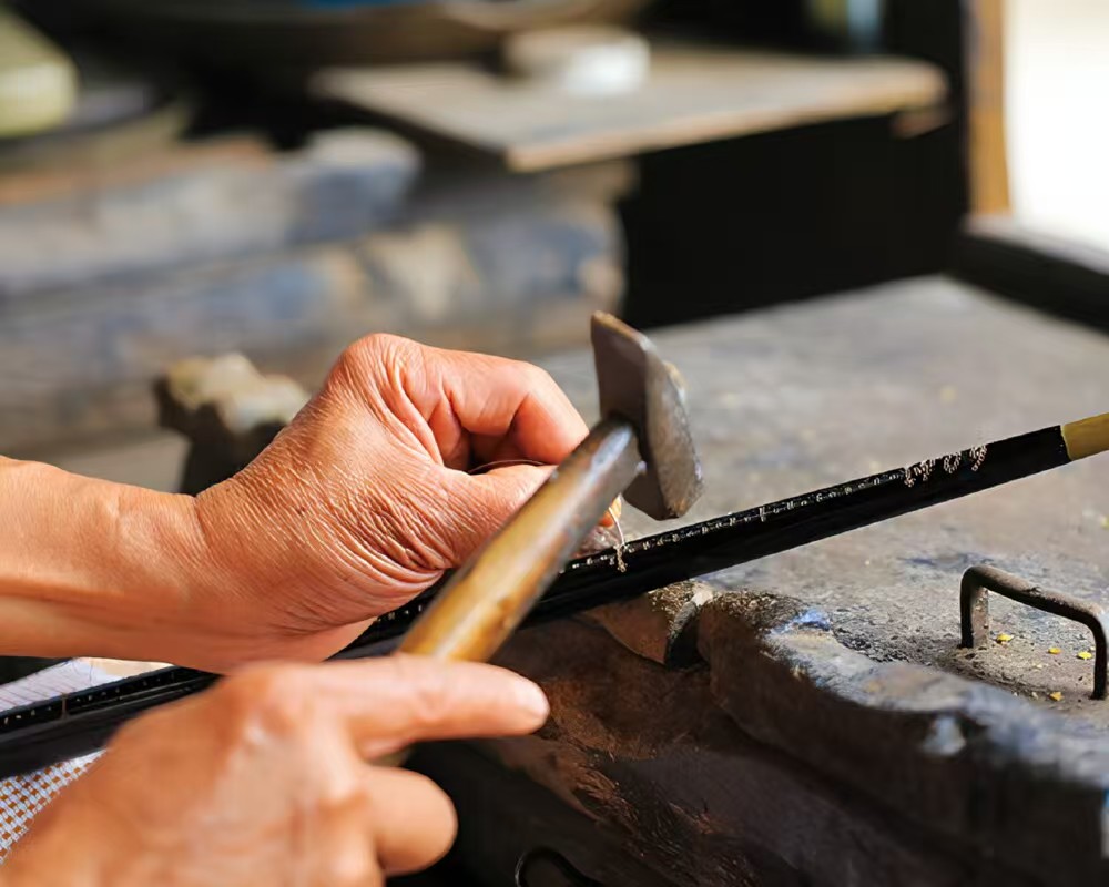 “杆秤制作是一门精细活,容不得半点马虎。”熊德兴老师拿起一把杆秤,向记者介绍道,“从选材到校准,每一个环节都要严格把关。”只见他用小锤轻轻敲打着秤杆上的铜星,调整着秤的精度。“这杆秤讲究的是公平和诚信,做秤的人心里得有一杆‘良心秤’。”