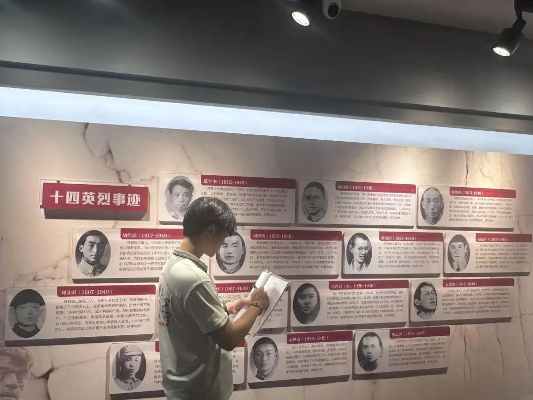 遗址陈列的老照片前,团队成员久久伫立 —— 画面中,身着粗布衣的百姓抬着担架奔袭,身后江面浓烟滚滚。“课本里的‘全民抗战’,在这里化作了一个个鲜活的身影、一幕幕真切的场景。”24 级金融管理与服务 2 班的王鹏同学在笔记本上写下感悟。