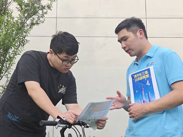 社区微宣讲,点亮民生幸福同城梦。第三站,实践团来到菊花里社区,向过往居民发放“长三角一体化发展成就”简明折页,并用“高铁更快、医保互通、空气更好”等家常话现场讲解。此举把宏大战略转化为居民看得见、摸得着的日常幸福,彰显了青年把国情教育做到群众心坎里的实践意义。