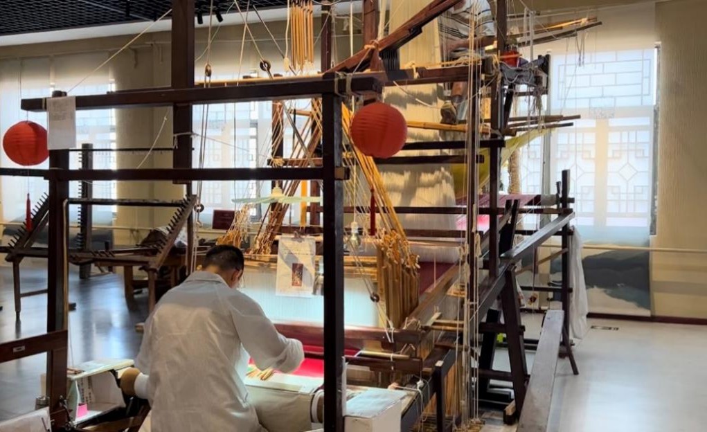 博物馆工作人员向团队介绍了多项传承与推广云锦文化的举措。其中,“云锦织造技艺现场演示”活动深受游客喜爱,通过织工们的现场操作,观众得以直观感受云锦织造的精妙。这台高4米、由1924个构件组成的“纺织活化石”,需两名工匠默契配合——楼上拽花工按纹样提综开口,楼下织手穿梭引线,其繁复工艺令在场众人惊叹不已。谈到云锦入选世界非物质文化遗产的核心价值,工作人员强调,云锦不仅是精美的丝织品,更是中华传统文化的载体。其独特的妆花技艺,能在同一织物上织出多种色彩和图案,堪称纺织工艺的奇迹。同时,云锦承载着丰富的历史、文化和艺术信息,具有极高的历史与艺术价值。