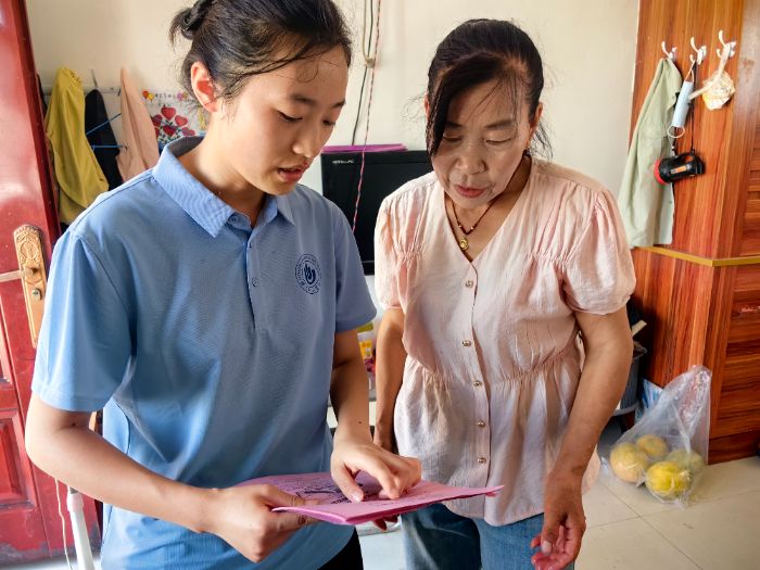 图为实践服务队入户为村民宣讲。姬皓真供图