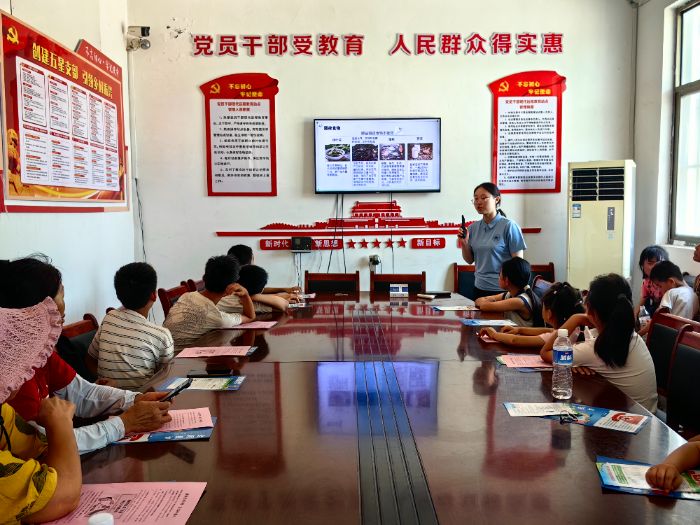 图为实践服务队在西屯村村委会为村民和孩子们宣讲。姬皓真供图