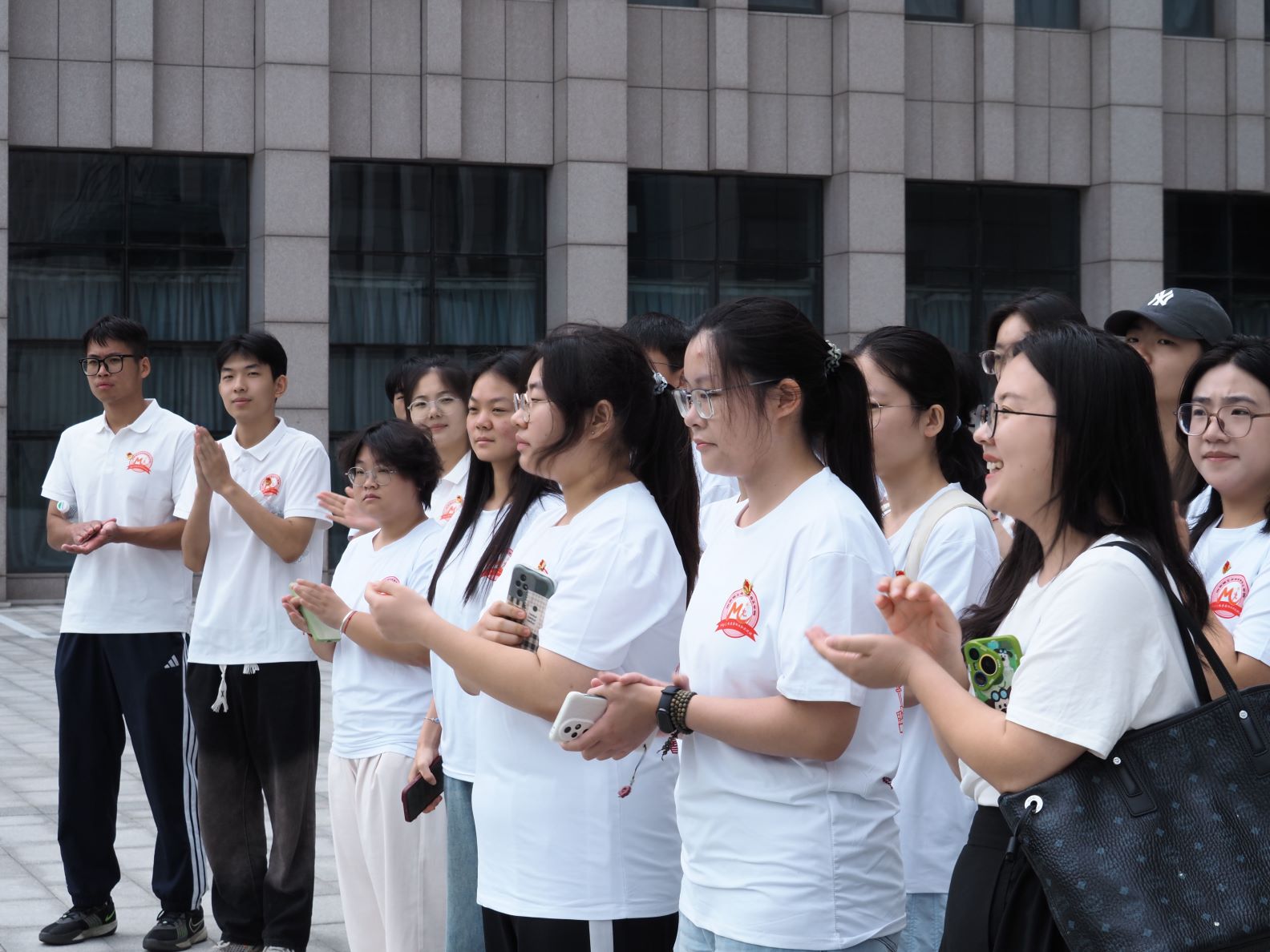 最后,讲解员带领大家移步于广场,为大家讲述了广场上两座雕像的寓意及相关背景。其中,“端牢能源饭碗”雕像手掌捧着石油芳烃,其分子式体现能源饭碗掌握在自己手中,雕像呈V字造型,既代表胜利英文首字母,也象征在端牢能源饭碗征程上取得的一项又一项胜利。西边的“利智先行”雕像,源自王献之书写的“一”字,经艺术加工呈现出逆龄前行的形象,代表科研人员不怕困难、克服困难的精神面貌。“端牢能源饭碗”雕像与“利智先行”书法石刻遥相呼应。此外,讲解员还提到,总书记曾在该广场与两百多名科研人员亲切交流并发表重要讲话,强调石油战线始终是共和国改革发展的一面旗帜,要继续举好这面旗帜,在确保国家能源安全和端牢能源饭碗上再进攻、再创佳绩。