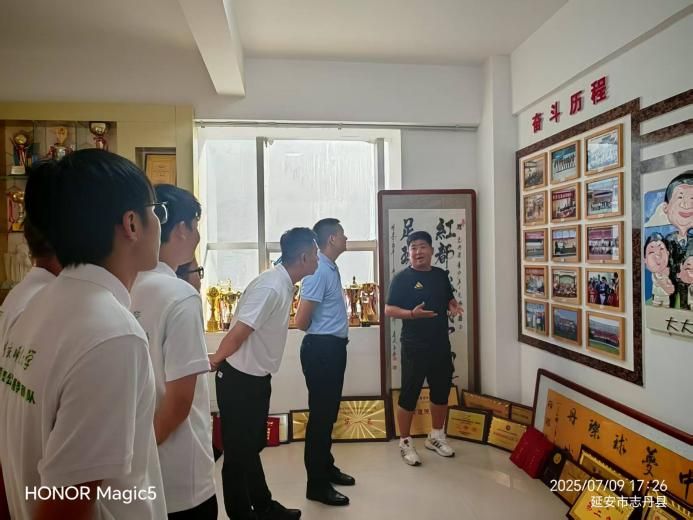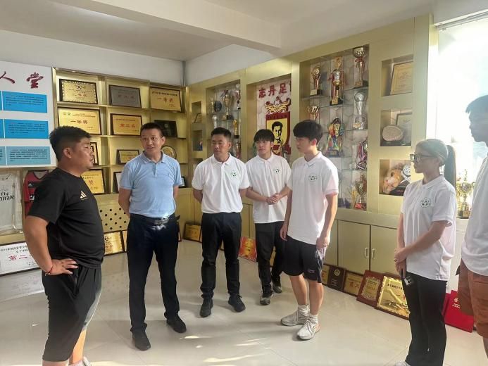 作为高校服务基层的重要实践载体,本次三下乡活动聚焦志丹县特色足球事业与红色文化资源,通过实地走访、交流学习、经验借鉴等形式,让青年学子在实践中受教育、长才干、作贡献。活动伊始,志丹县足球协会牛永权教练带领团队成员参观“足协荣誉室”。从早期简陋的训练日志到全国性赛事的冠军奖杯,从乡土球场的黑白照片到标准化训练基地的全景图,牛教练生动讲述了志丹足球在基层土壤中扎根生长的奋斗历程。那些凝结着汗水与坚持的展品,让团队成员深刻体会到基层体育工作者“扎根老区、踢出未来”的执着信念,也为后续开展足球公益服务积累了宝贵的基层经验。