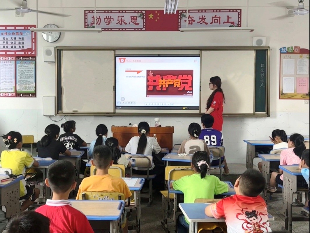 党史课是支教团队每年的特色课程之一。2024年颁布的《党史学习教育工作条例》中要求通过富有成效的党史宣传和教育,用党的历史教育人、启迪人、感化人、鼓舞人。此次,“漓漓圆上草”的支教老师采取了“视听共鸣+情感浸润”的新授课方式,改变了以往教师直接讲解、灌输知识的传统方式,创新性地让孩子们在沉浸式体验中感受党史的魅力,为党史教育赋予了不一样的意义。