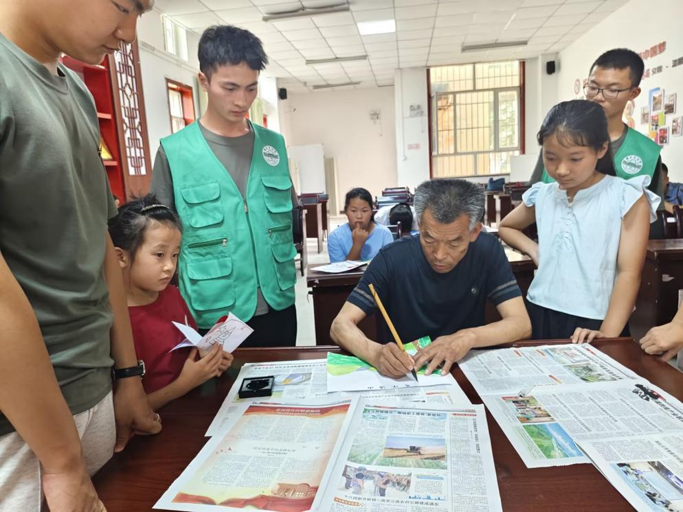 铺开画纸,孩子们立刻沉浸在创作中:有的画下中国的轮廓、天安门、五星红旗,用鲜亮的色彩展现祖国的富强;有的画祖国美丽的山河;还有的发挥想象,将火箭、坦克,潜艇画在一起,感叹“祖国真伟大”。实践队成员在旁耐心指导,帮孩子们调整构图,更鼓励他们“把心里最想对祖国说的话画出来”。