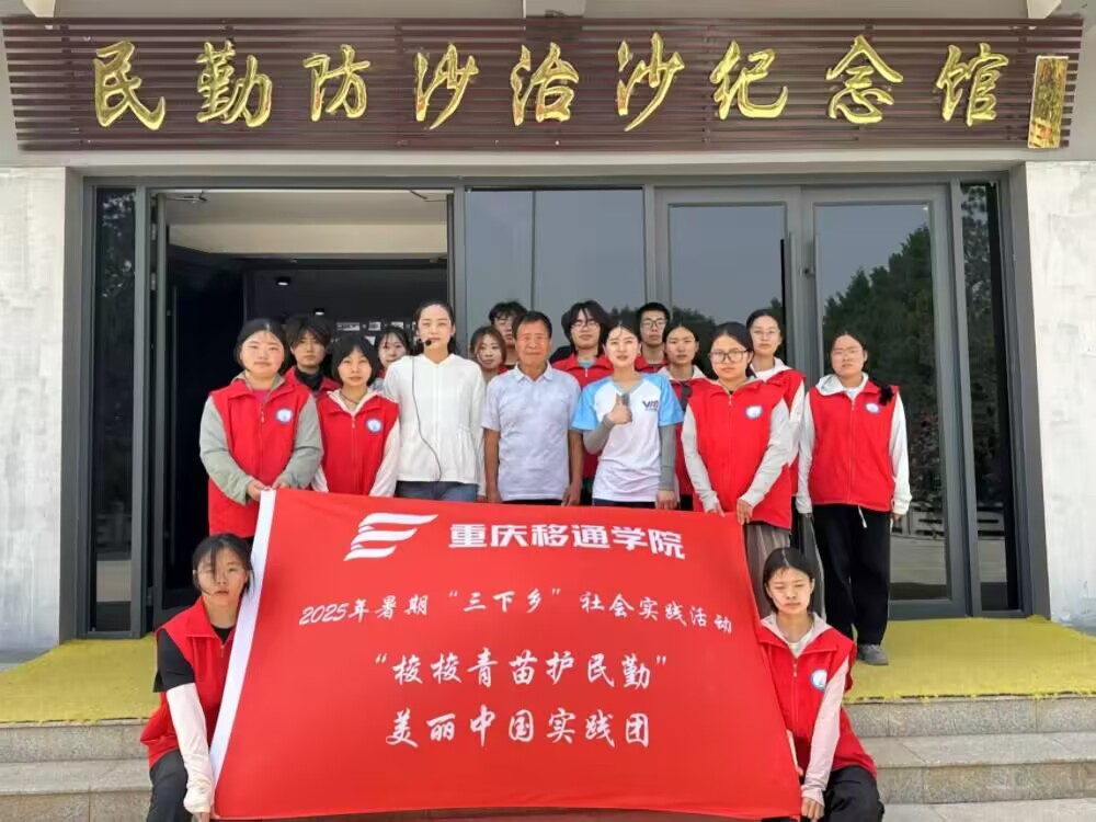 7月5日至7月11日,重庆移通学院数字经济商学院“梭梭青苗护民勤”美丽中国实践团奔赴甘肃省民勤县治沙最前线。在这整整7天的基地实践时光里,队员们全身心投入,亲手参与梭梭苗的养护工作,与基层治沙人展开深度对话,倾听他们的治沙故事。7月11日告别实践基地后,团队又马不停蹄地前往民勤防沙治沙纪念馆等地参观学习。此次行程,意在让队员们零距离感受治沙工作的艰辛不易,深度探寻民勤人数十年来坚守荒漠、矢志不渝再造绿洲的精神内核,以青春独有的视角,记录并传承这份沉甸甸的生态守护使命。
