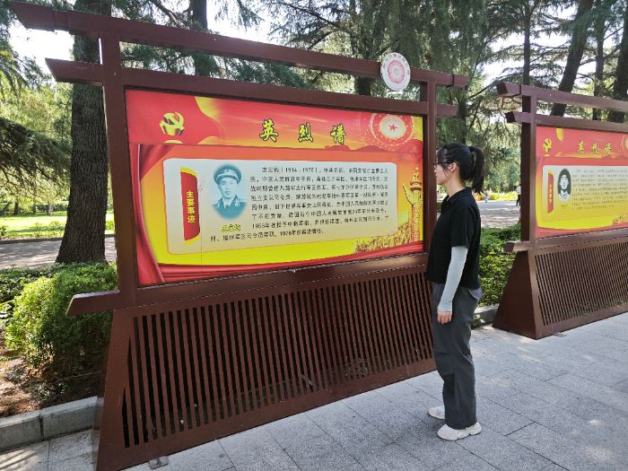 2025年7月6日,实践团队通过一系列讨论,确定了中原英烈纪念馆、碧沙岗公园和二七纪念堂的参观路线,并通过实地参观学习与相互交流,直观地了解了中原英烈的事迹,丰富了队员对于中原英烈精神的理解,为接下来的宣讲做好了理论准备。队员们首先来到了庄严肃穆的郑州烈士陵园,向烈士纪念碑深深鞠躬并献上花朵,表达了他们对烈士们的崇敬与哀思。