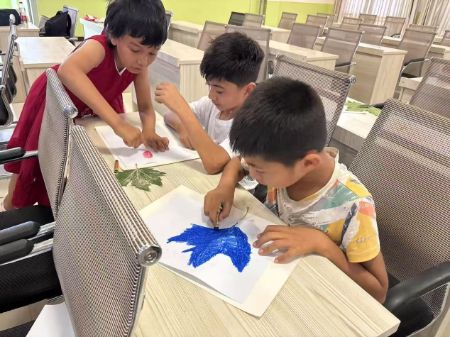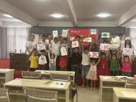 为深入贯彻落实国家乡村振兴战略,加强青少年生态文明教育,7月11日,实践团在麦盖提县南网社区化身“植物老师”开展了一场生动有趣的生态科普志愿活动,为当地孩子们带来了一场别开生面的生态知识盛宴。成员们以树叶为媒、以照片为介,让抽象的植物知识变得可触可感。树叶拓印的课堂上,孩子们用颜料将枣叶、杨树叶的轮廓印在纸上,拓下的不仅是叶片的纹路,更是对自然之美的最初认知。