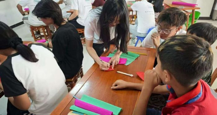 为贯彻生态教育相关政策,助力青少年生态知识普及,7月10日,实践团走进惠民社区,联合社区负责人王雪润开展了一场红领巾小课堂活动,活动以手工教学与知识问答融合的形式,为社区小朋友带来独特生态科普体验。手工折玫瑰的芬芳与生态问答的思辨交织,同王雪润等社区负责人的协同助力,让“尊重自然、爱护自然”的理念如春雨般浸润童心,为边疆的生态未来播下希望的种子。