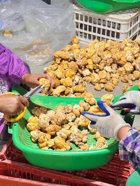 从大棚出来,张局长带领大家来到产品展示区,她向队员们介绍,模范村这些年一步步构建起从种植到销售的完整猴头菇产业链,实现了产销一体化。村里积极引入新的培育技术和加工设备,产品的质量和产量稳步提升。张局长指向展架上的货品——猴头菇粉、猴头菇酱、菌菇参汤包等20多种产品整齐陈列,“合作社一直没停下创新的脚步,这些都是咱们不断尝试的成果。”这些话让队员们对当地猴头菇产业的多元化发展有了更直观的感受。