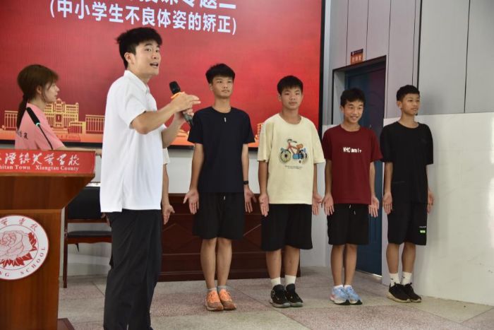 2025年7月15日,湖南科技大学体育学院暑期“三下乡”社会实践团队联合湖南科技大学运动康复中心,邀请康复中心专家唐晖教授及学生团队赴湘潭县石潭镇芙蓉中学开展“不良体姿的科学矫正”专题宣讲。讲座聚焦青少年常见体姿问题,旨在普及科学康复知识,推动专业资源下沉基层,切实提升乡村学生的健康素养和身体素质,助力乡村青少年的全面发展。